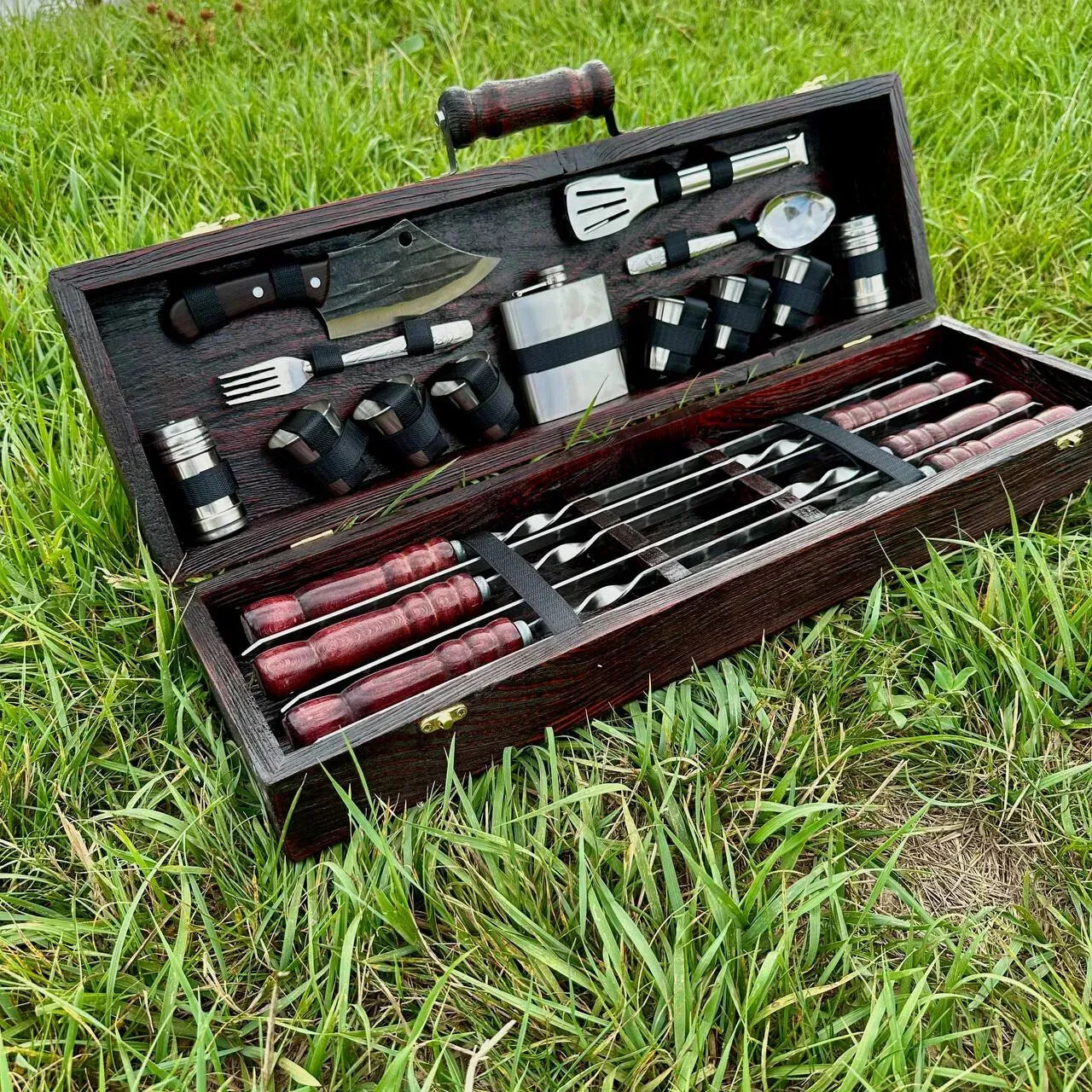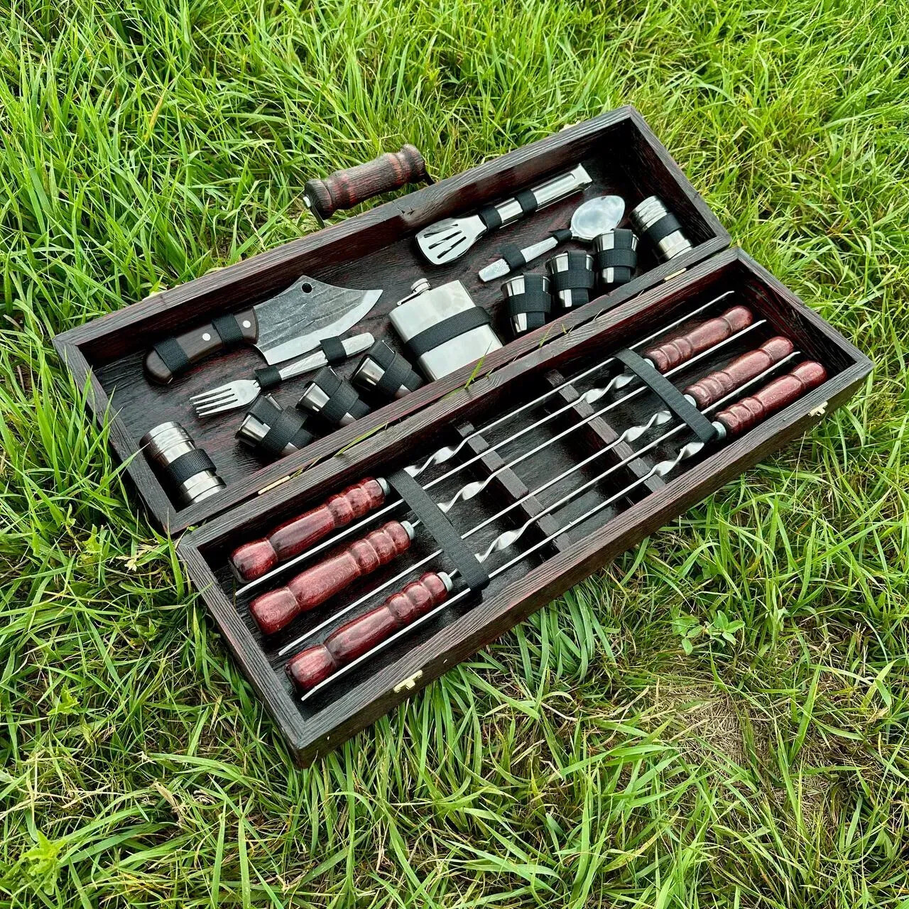 ✅ Set complet pentru 6 persoane✅ Frigărui din oțel inoxidabil – durabile și reutilizabile✅ Cuțit din oțel carbon – ascuțit și fiabil✅ Ideal pentru grătar, picnic, camping, cabană✅ Ușor de transportat și utilizat