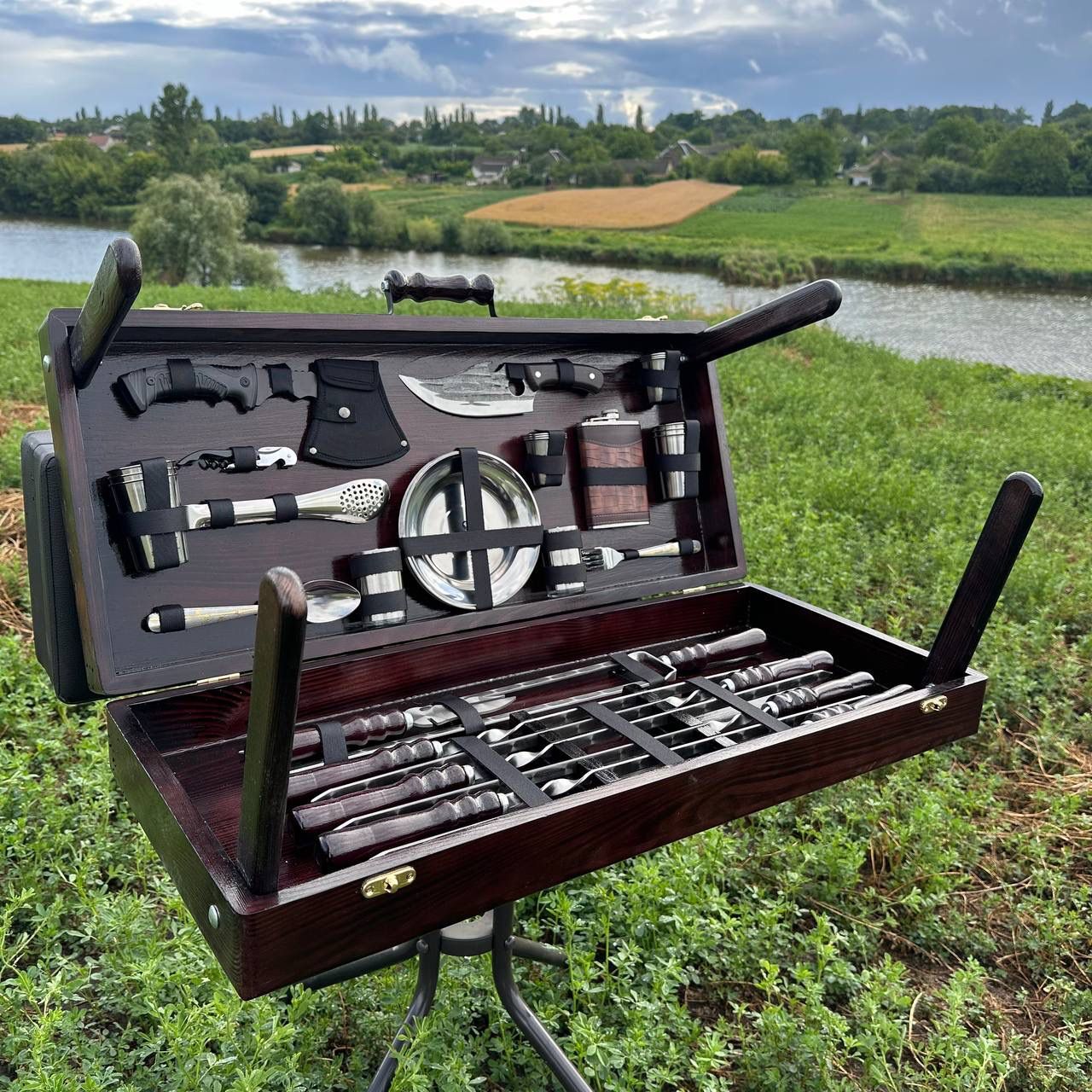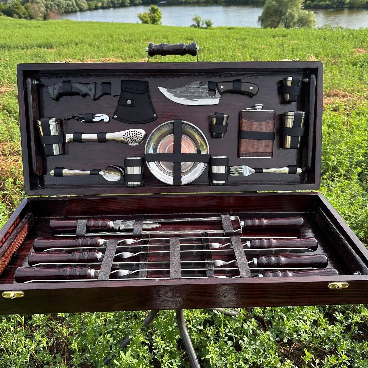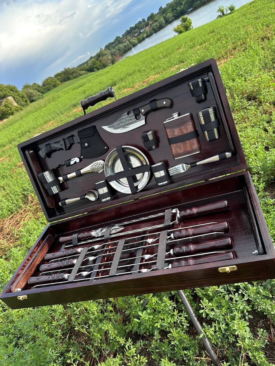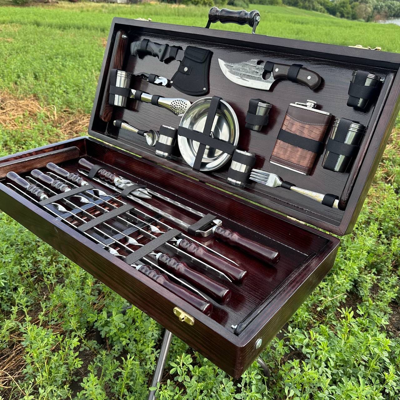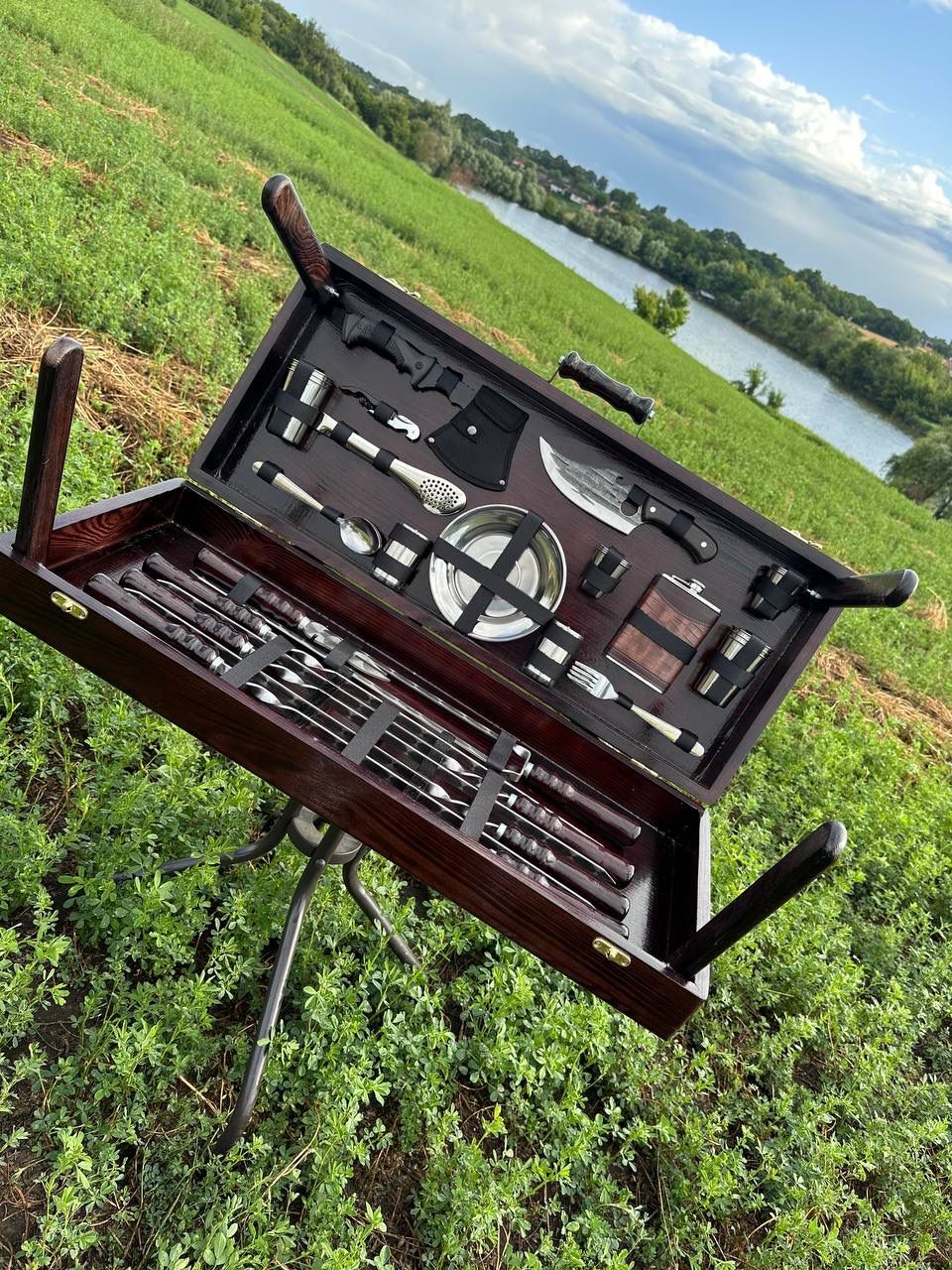 Acest set complex pentru grătar și picnic este creat pentru adevărații pasionați de gătit în aer liber. Reunește ustensile profesionale, accesorii de servire și elemente practice într-un singur pachet, ideal pentru ieșiri la grătar, camping, cabană sau evenimente cu prietenii.