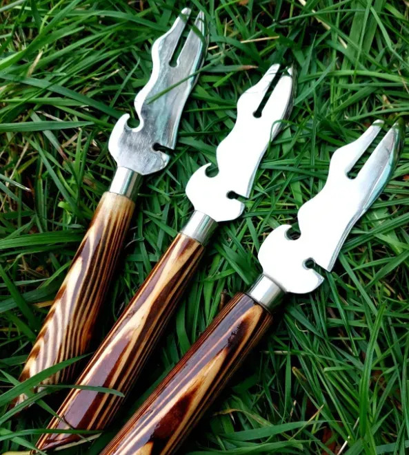 ✨️Furculiță-cuțit pentru scoaterea și tăierea cărnii! 🍴Un dispozitiv indispensabil la un picnic! Furculița-cuțit este ideală pentru verificarea gătitului kebabului și pentru scoaterea lui de pe frigăruie! 😉Și acest dispozitiv are și funcție de desfăcător de sticle! 🌳Furculița-cuțit este fabricată din: - un mâner din lemn natural, acoperit cu un strat dublu gros de lac - o lamă din oțel inoxidabil de 3 mm